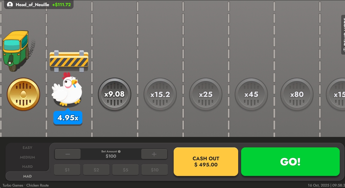 Chicken route goes beyond delivering fast-paced fun; it also offers real potential for substantial rewards. Multipliers can reach up to x1,000,000, with a maximum win capped at $10,000. These impressive figures place the game among the most lucrative titles in the crash genre.